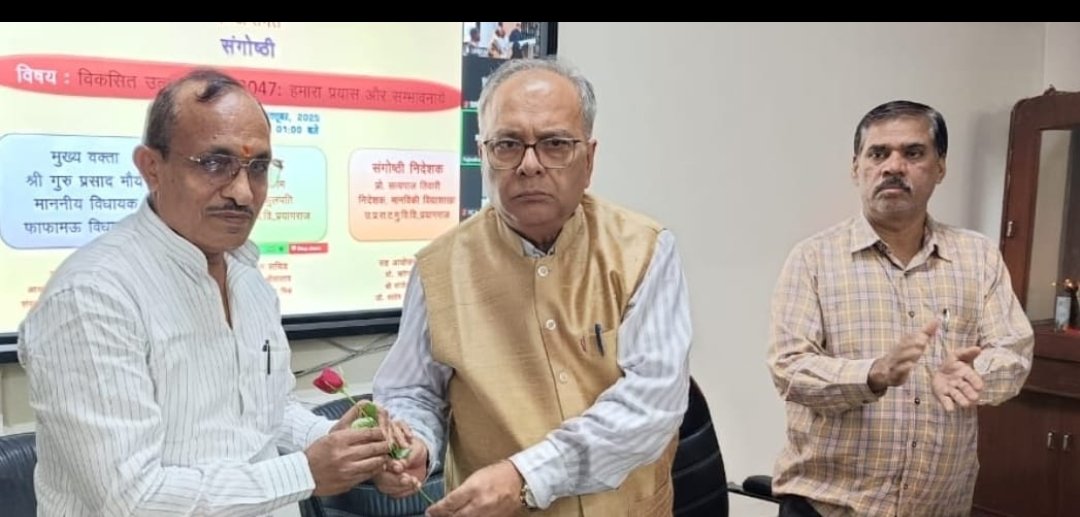प्रयागराज । उत्तर प्रदेश राजर्षि टंडन मुक्त विश्वविद्यालय, प्रयागराज के मानविकी विद्या शाखा के तत्वावधान में शनिवार को विकसित उत्तर प्रदेश @2047 समृद्धि का शताब्दी पर्व महाभियान के अंतर्गत विकसित उत्तर प्रदेश @2047 हमारा प्रयास और संभावनाएं विषय पर सेमिनार का आयोजन किया गया। कार्यक्रम के मुख्य वक्ता श्री गुरु प्रसाद मौर्य, विधायक, फाफामऊ विधानसभा ने कहा कि विकसित उत्तर प्रदेश के लिए यह जरूरी है कि गांव के अंतिम पायदान पर विकास हो। विकसित भारत के लिए आर्थिक, शैक्षिक, आध्यात्मिक, सांस्कृतिक, स्वच्छता, स्वास्थ्य , स्वच्छ पर्यावरण, जल, बिजली, रोजगार की व्यवस्थाएं समुचित होना चाहिए। जनप्रतिनिधि श्री मौर्य ने कहा कि सरकार लघु कालीन एवं जन कल्याणकारी योजनाओं को चलाने के लिए कार्य कर रही है जिससे प्रदेश एवं राष्ट्र का विकास हो। पर्यावरण के संरक्षण के लिए मां के नाम एक पेड़ लगाने की पहल सरकार कर रही है और यह वर्तमान में जन आंदोलन का रूप ले चुका है। इसी प्रकार जल संरक्षण एवं जैविक खेती के विकास के लिए सरकार हर संभव प्रयास कर रही है। अनावृष्टि, अतिवृष्टि, ग्लोबल वार्मिंग, वनों की कटाई, रसायनों का प्रयोग पर्यावरण के लिए संकट है। इस पर रोकथाम के लिए लोगों को जागरूक किया जा रहा है। उन्होंने कहा कि मिशन शक्ति महिलाओं के लिए समृद्धि एवं विकास के लिए योजना है। आज वरिष्ठ नागरिकों जिनकी उम्र 70 वर्ष के ऊपर है, सरकार उनके मुफ्त इलाज के लिए आयुष्मान कार्ड जारी कर रही है।