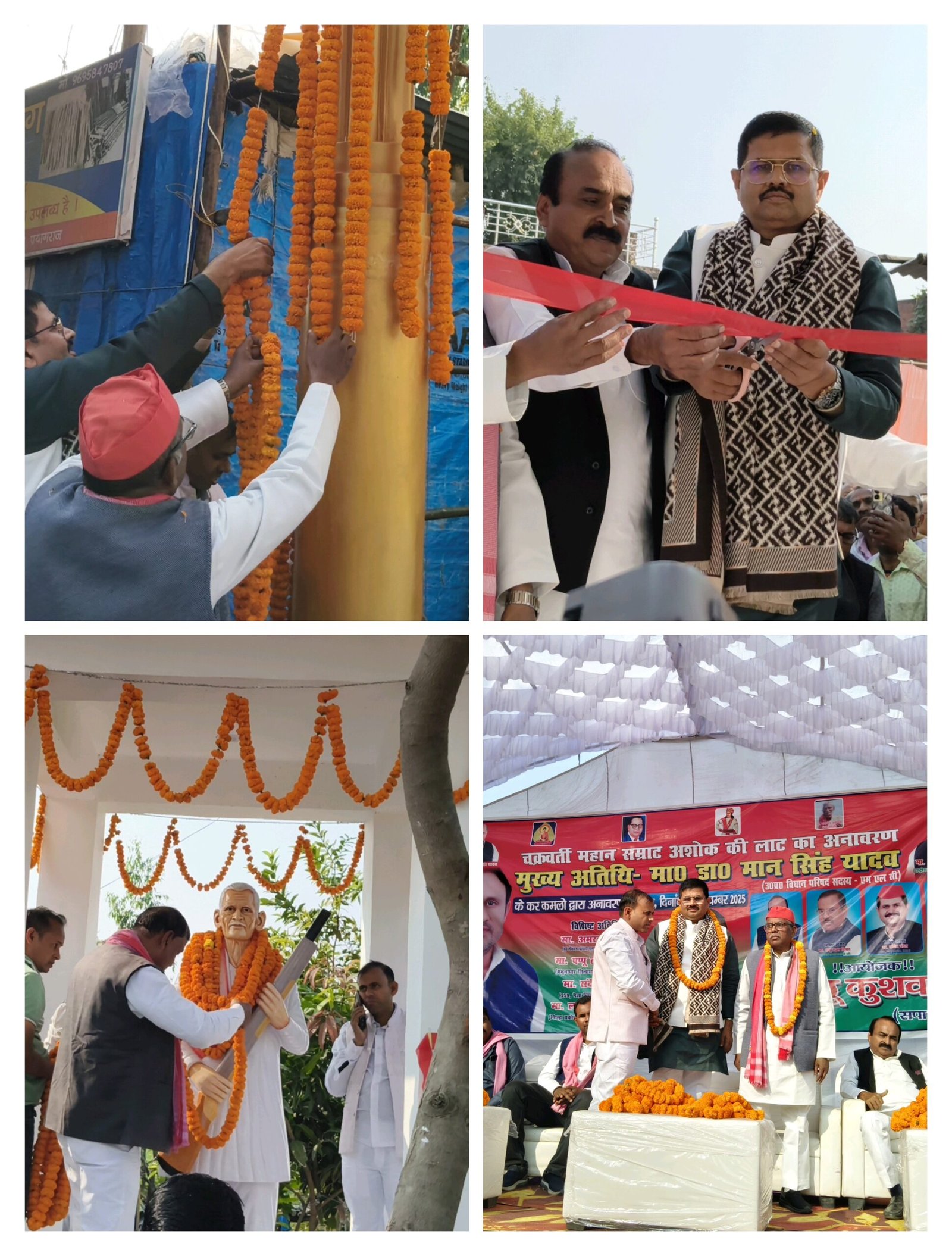मेजा,प्रयागराज। चक्रवर्ती महान सम्राट अशोक की लाट का भव्य अनावरण कार्यक्रम धूमधाम से उरुवा गौसौरा कला में आयोजित किया गया। मुख्य अतिथि मा० डॉ. मान सिंह यादव (एमएलसी) ने ऐतिहासिक लाट का अनावरण कर इसे क्षेत्र की जनता को समर्पित किया। कार्यक्रम में बड़ी संख्या में स्थानीय लोग, कार्यकर्ता और सम्मानित नागरिकों की उपस्थिति देखने को मिली।