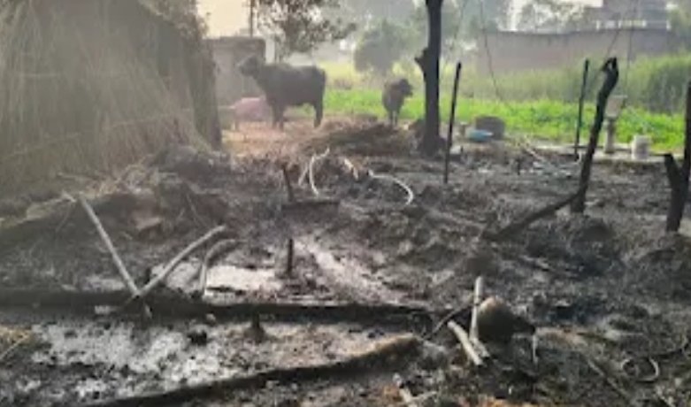 मेजा में गाय की जलकर मौत अज्ञात कारणों से छप्पर में लगी आग, मचा हड़कंप