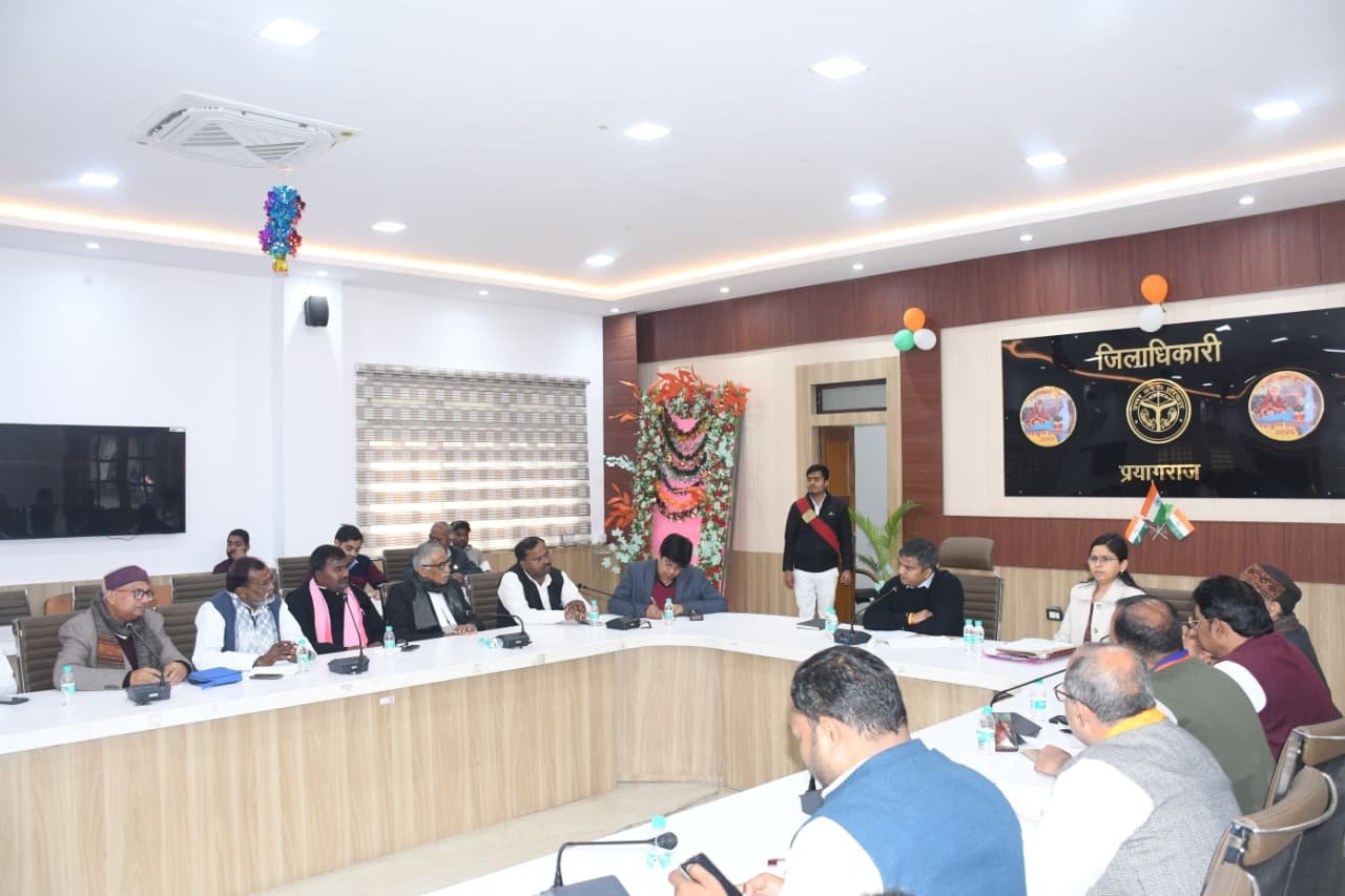 प्रयागराज । जिलाधिकारी मनीष कुमार वर्मा की अध्यक्षता में गुरूवार को संगम सभागार में मान्यता प्राप्त राष्ट्रीय एवं राज्यीय राजनैतिक दलों के प्रतिनिधियों की उपस्थिति में विधानसभा निर्वाचन क्षेत्रों की निर्वाचक नामावलियों का विशेष प्रगाढ़ पुनरीक्षण कार्यक्रम-2026 के सम्बंध में बैठक आयोजित हुई। जिलाधिकारी ने बैठक में उपस्थित राजनैतिक दलों के प्रतिनिधियों से कहा कि अभियान के अन्तर्गत निर्धारित कार्यक्रमानुसार दावे और आपत्तियां प्राप्त करने हेतु दिनांक 06.02.2026 को अन्तिम तिथि निर्धारित है, जिसमें मात्र एक दिन ही शेष है। अतः आपसभी प्रतिनिधियों से अनुरोध है कि आपके द्वारा नियुक्त बीएलए की मदद से दिनांक 06.02.2026 को अर्ह मतदाताओं का फार्म-6 भरवायें, जिससे कि उनका नाम 06 मार्च, 2026 को प्रकाशित होने वाली अन्तिम सूची में सम्मिलित हो सके। उन्होंने कहा कि जो भी सदस्य 01.01.2026 की अर्हता तिथि के अतिरिक्त 01 अप्रैल, 01 जुलाई, 01 अक्टूबर-2026 को 18 वर्ष की आयु पूर्ण करने वाले है, वे सभी अपना नाम मतदाता सूची में सम्मिलित कराये जाने हेतु फार्म-6 घोषणापत्र के साथ भरकर सम्बंधित बूथ लेवल अधिकारी/निर्वाचक रजिस्ट्रीकरण अधिकारी के कार्यालय में जमा कर दें, ऐसे सभी नए मतदाताओं का नाम प्रकाशित होने वाली अन्तिम सूची में सम्मिलित हो जायेगा। उन्होंने सभी प्रतिनिधियोें से नए वोटर्स बनाये जाने में सहयोग करने के लिए एवं बीएलओ से सम्पर्क कर ज्यादा से ज्यादा अर्ह मतदाताओं का फार्म-6 अनुलग्नक-4 सहित घोषणापत्र के साथ बीएलओ को उपलब्ध कराने के लिए अनुरोध किया।