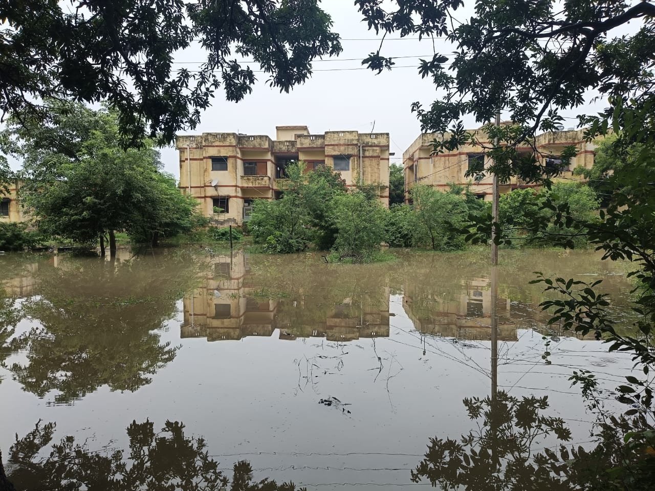 स्थानीय कर्मचारियों ने बताया कि परिसर में जलनिकासी की समुचित व्यवस्था नहीं होने के कारण थोड़ी सी बारिश में भी पानी जमा हो जाता है, लेकिन इस बार हालात बेकाबू हो गए हैं।