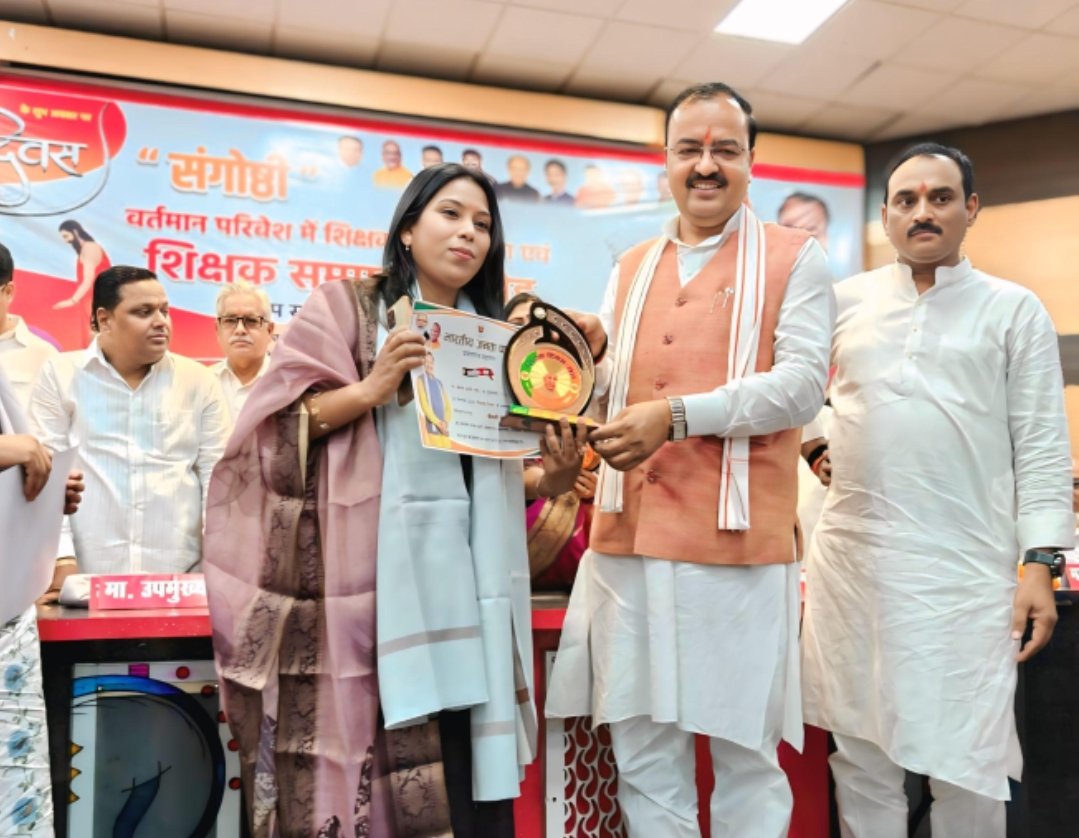 मेजा की शिक्षिका संगीता चौधरी को उपमुख्यमंत्री ने किया सम्मानित